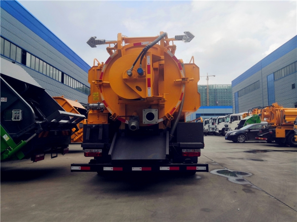 吸污部分:7方污罐,罐体6mmQ235优质碳钢,配淄博SK-12水循环泵,8米吸污管一根,进气管加过滤网,防溢阀加高,后盖卡扣锁紧,前视污亮管,后尾部加装1个力拓牌**mm的球阀吸污口150mm排污口,罐体带举升功能,后门带液压开启。